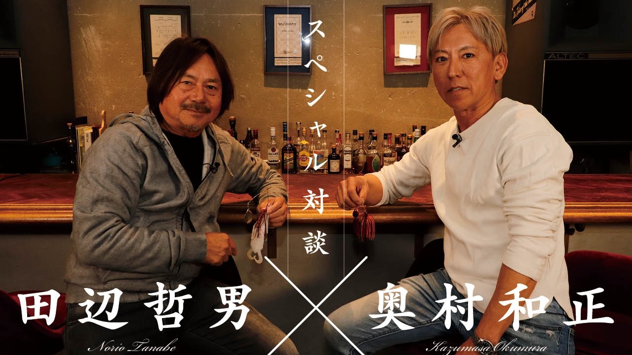 バス釣り界のレジェンド、奥村和正と田辺哲男によるスペシャル対談。住宅街のスタジオで、琵琶湖でのビッグバスハンティングを極めた奥村と、日米トーナメントを牽引した田辺が熱く語り合う。長年現役で活躍する共通のメインルアーは「スピナーベイト」。開発秘話や二人の出会い、そしてバスフィッシングの未来まで、スピナーベイトを主軸にビッグバスを追い求める情熱が交錯する。具体的な釣果シーンはないが、ベテランアングラー二人の深い洞察と金言が満載の一本だ。